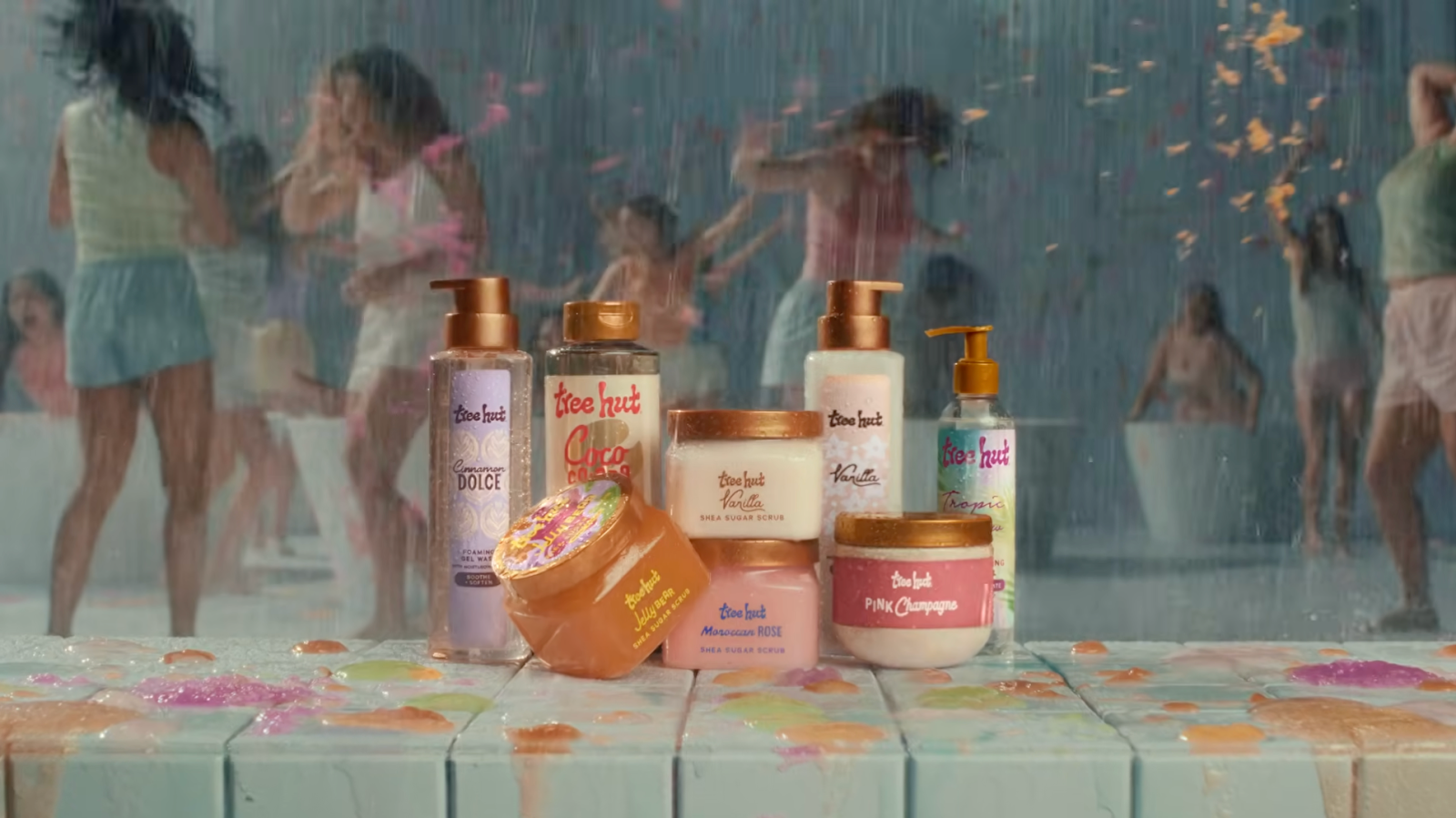 Bold visuals, movement, and sensory cues emphasize Tree Hut’s core message that self-care is joyful, expressive, and personal, not restrained or formulaic.