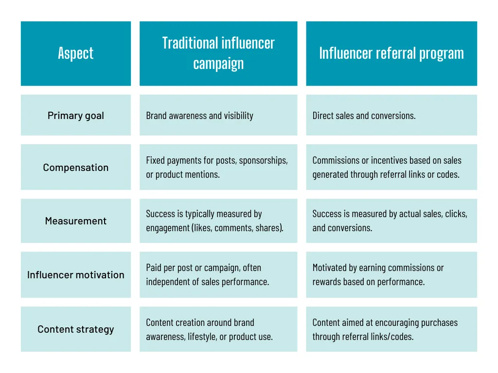 Affiliate program involves onboarding customers to promote products and generate sales. Influencer referral programs, however, refer to partnering with social media creators in exchange for commissions on every successful sale.